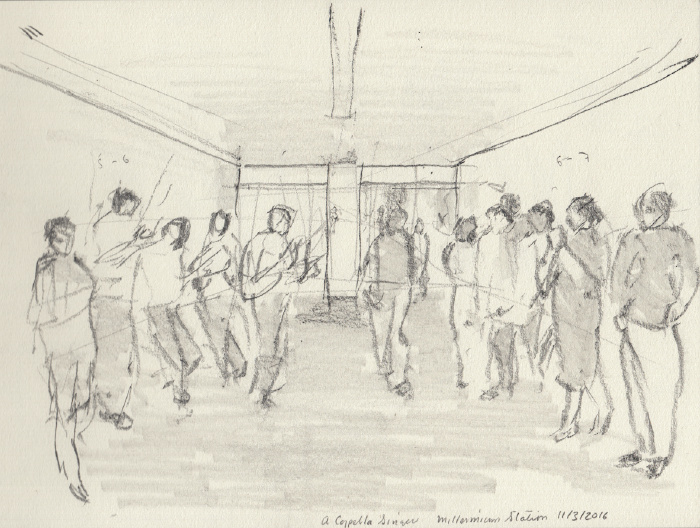 Every day for the past three months I have drawn some scene or event that I saw that day, purely from memory.