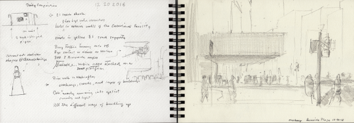 I first read about this exercise in the 1980s. How I wish I had followed that advice consistently since then! Nevertheless, when I go back and look at old sketchbooks and discover my occasional Daily Compositions, no matter how bad the drawings, I do feel the strings of memory vibrating strongly.